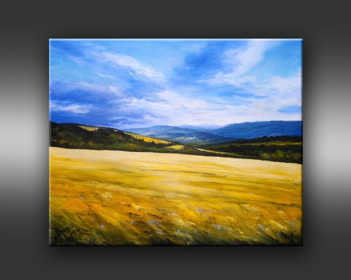 Peinture paysage Haute Savoie - Tableau peinture campagne - Peinture champ de blé